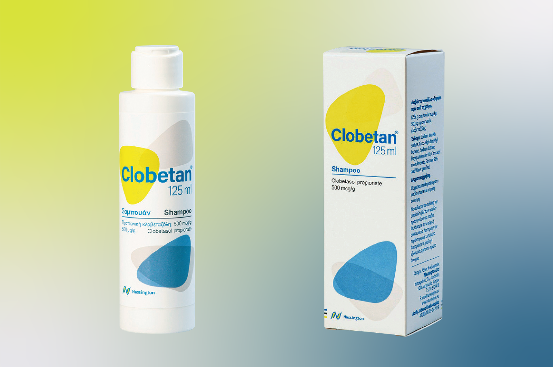 Λογότυπος φαρμακευτικής εταιρείας και συσκευασίες φαρμάκων και καλλυντικών σκευασμάτων.