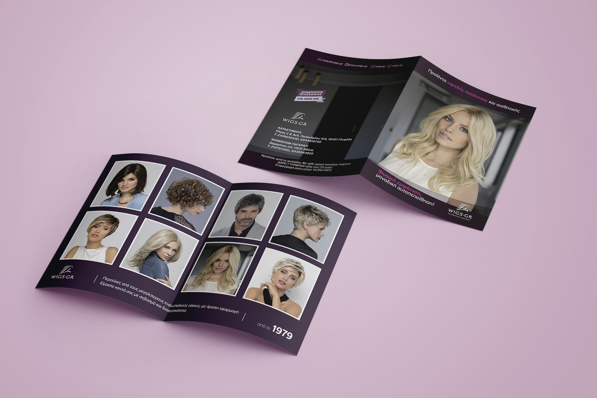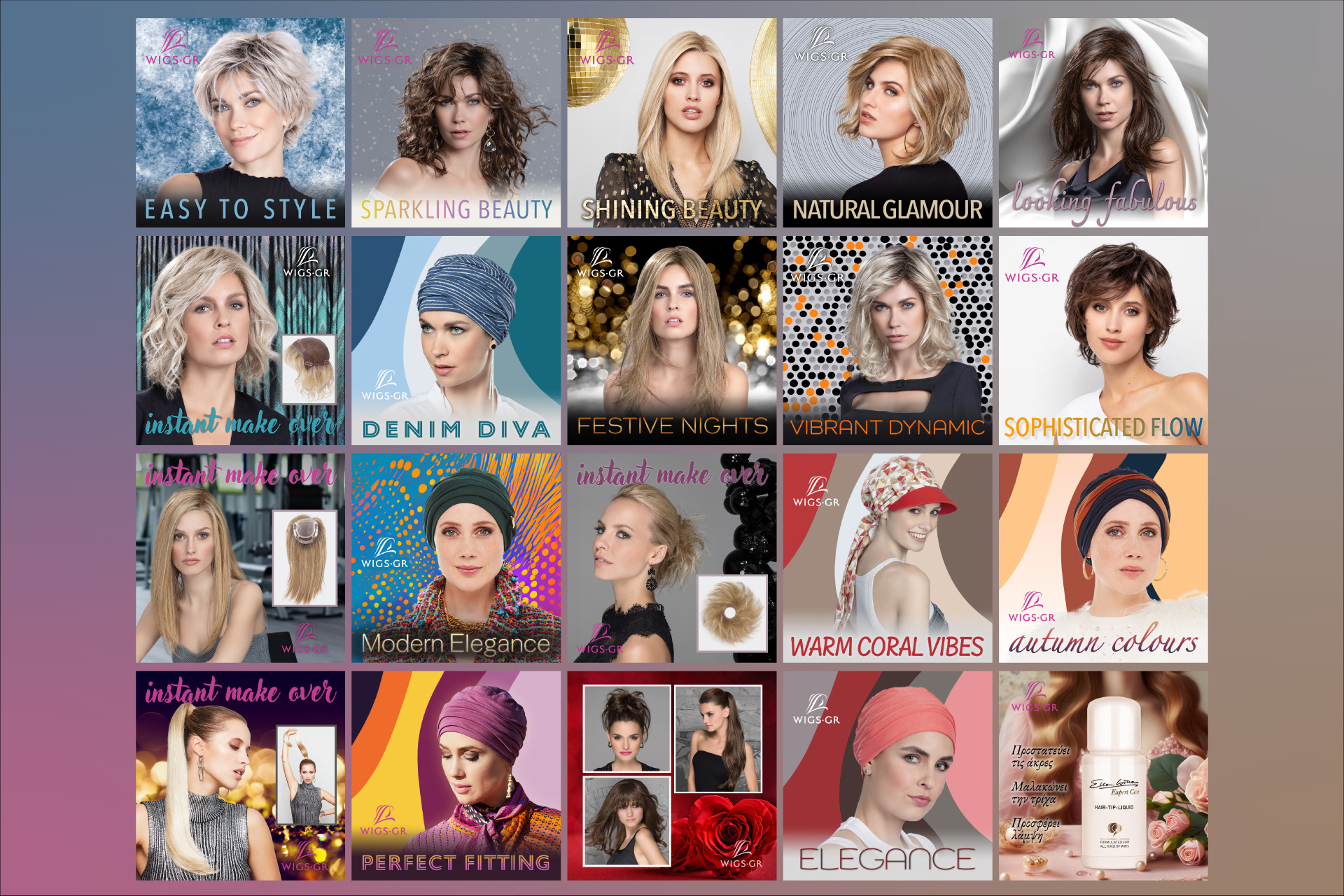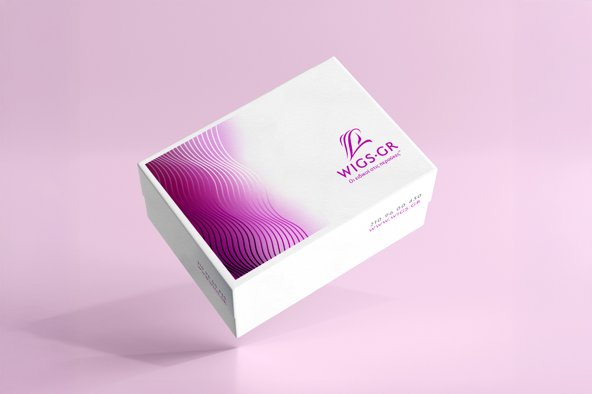 Rebranding σε κουτιά συσκευασίας για περούκες, χάρτινες τσάντες, κάρτες, διαφημιστικά έντυπα, social media, video για διαφημιστική προβολή.